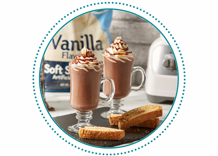 - Combine 1/3 cup Frostline® Chocolate Soft Serve Mix with other ingredients and blend until smooth.